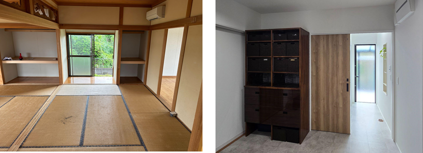 久保田氏の奥様とともに今の暮らし心地について語っていただいた。「九州であっても冬は寒く、外気温が2℃、3℃の日もあって、朝などは室内温度が外とあまり変わらなく、家族みんな寒い思いをしていました。それが今では冬でも朝から暖かく、リノベでも実家より快適性が進化していると実感しています。寝る時もこれまでの羽毛布団ではなく、一年中薄い布団で十分です。それからゴキブリが