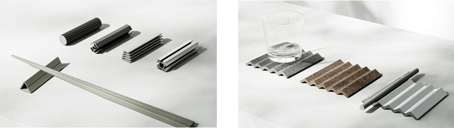井上:コロナ禍前に立ち上げた当初から、インハウスデザイナーの持つデザイン力をもっと活かしたいという想いが背景にありました。特に建材は、使用する素材がある程度決まっており、形状も直線基調が多く、自由度が低いという特徴があります。結果、デザイナーの能力が一方向に固まってしまうのではという懸念が個人的にありましたし、デザイナーたちからも「もっといろいろなことをやりたい」という話を聞いていたのです。