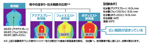 ※使用比率はアクアスプレー66%、パワフルスプレー21%、ボディミスト8%、フェイスミスト3%、クレンズジェット2%で計算。