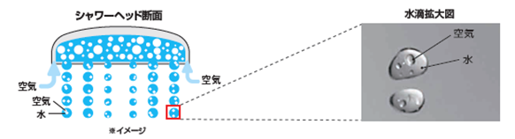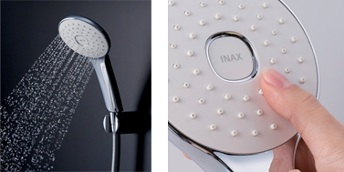 空気をたっぷりと含んだ肌当たりが心地よい大粒のシャワーです。快適な浴び心地と同時に節水効果も実現しました。