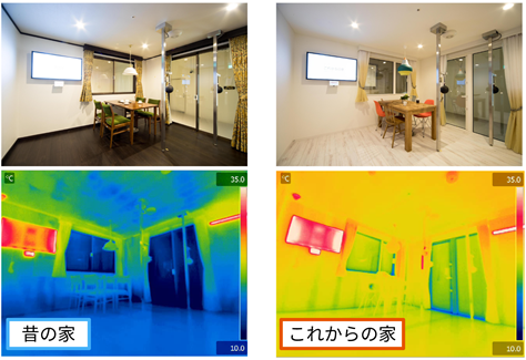 「昔の家(断熱等級2)」と「これからの家(断熱等級6)」